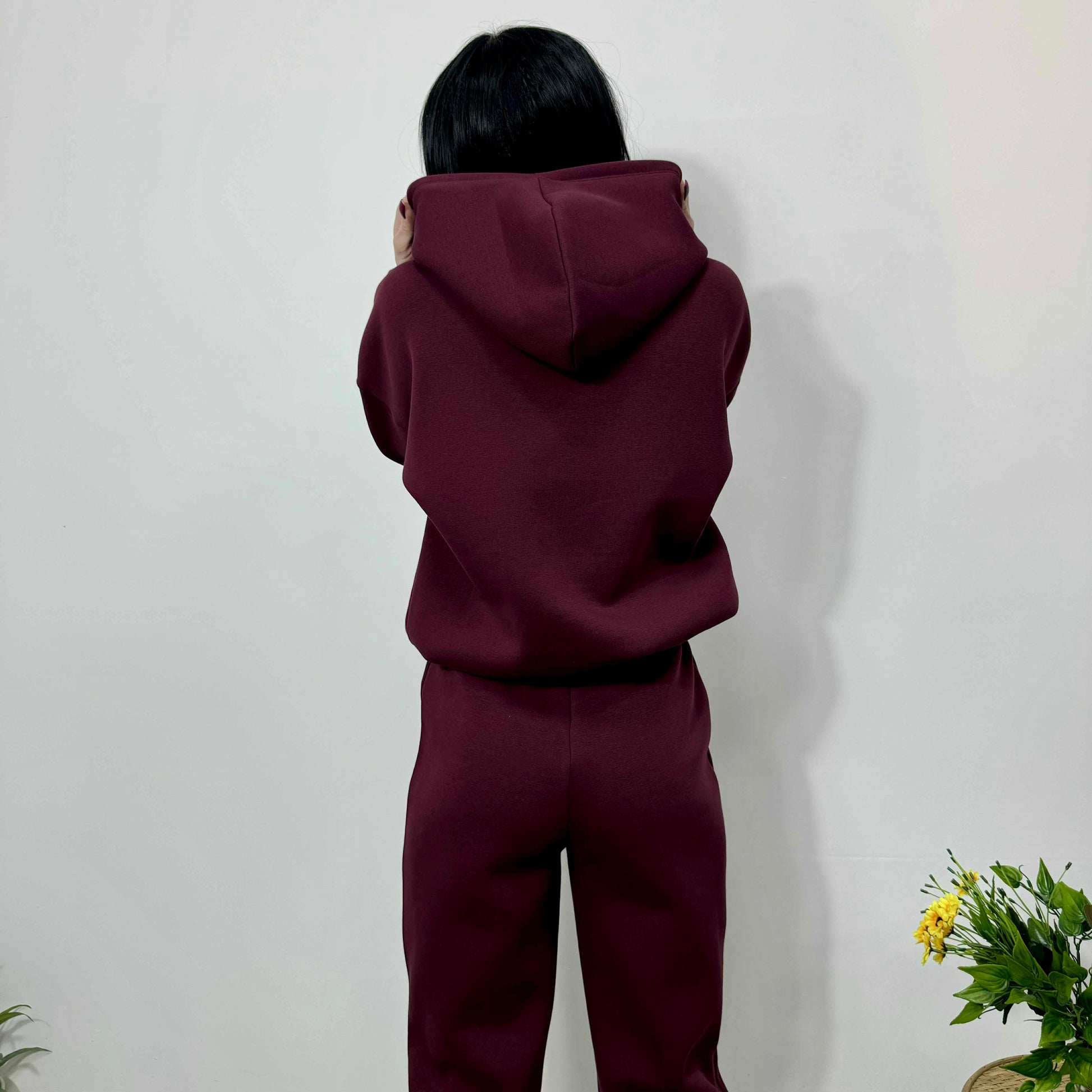 Този комплект е в тъмен винен нюанс, най-близо до бордо / бургунди.
