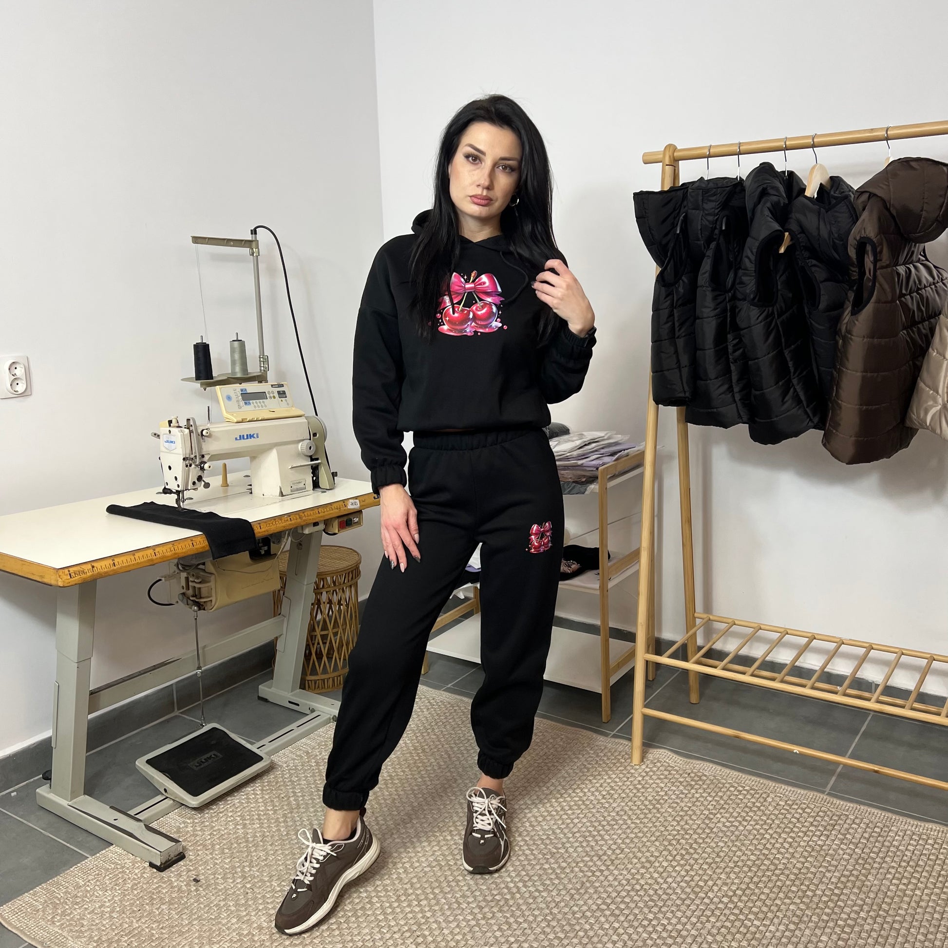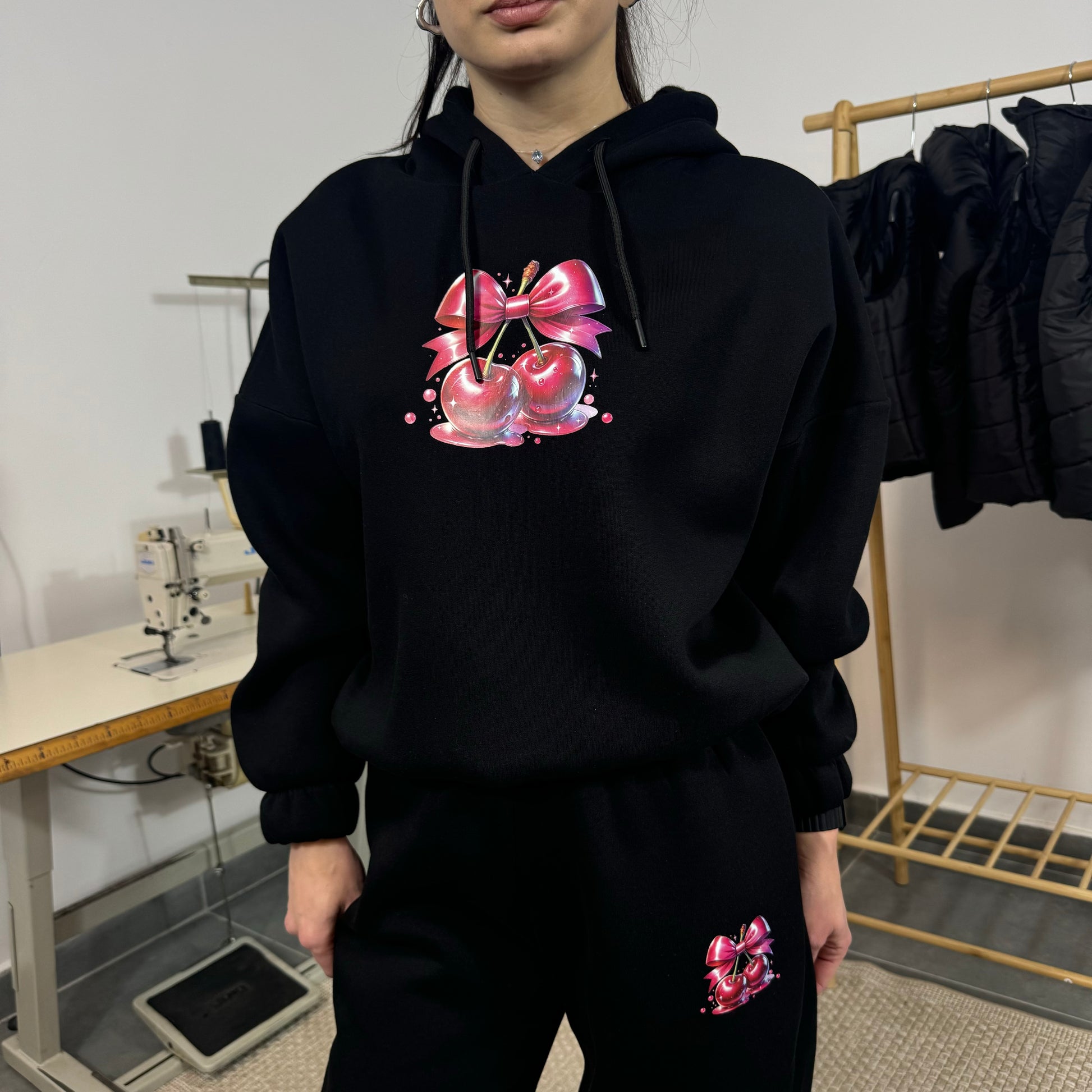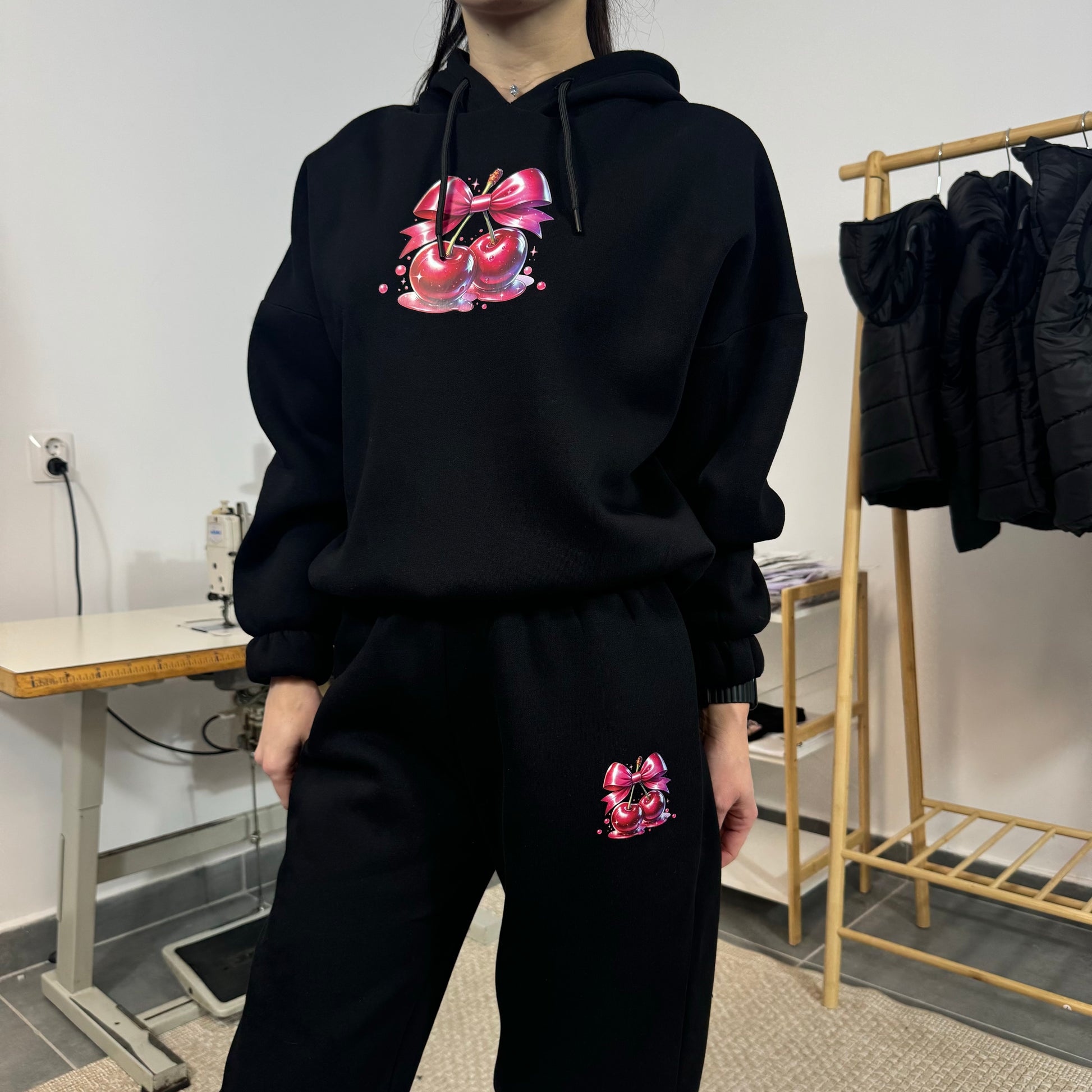 Ватиран комплект SWEET CHERRY от две части с качулка - черен