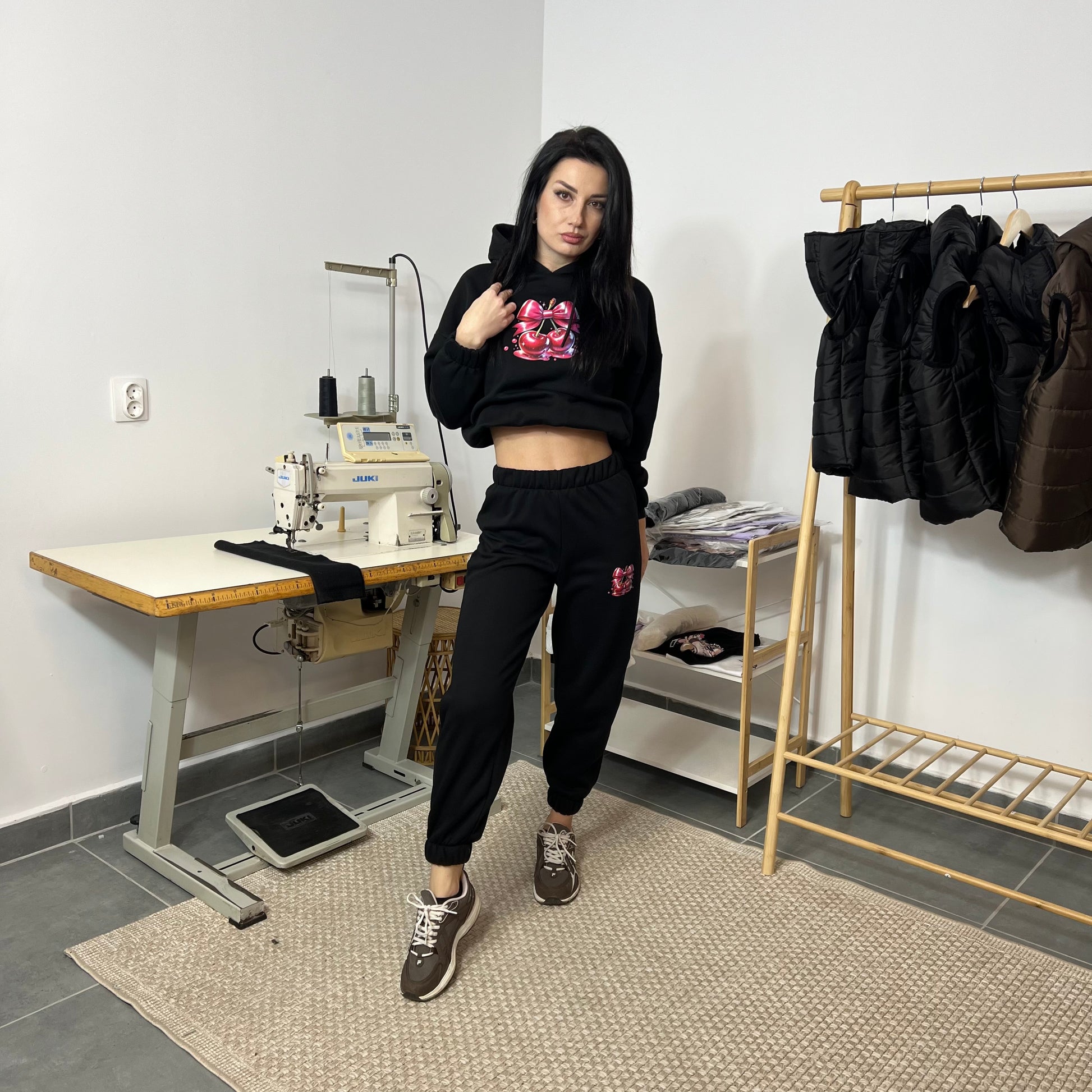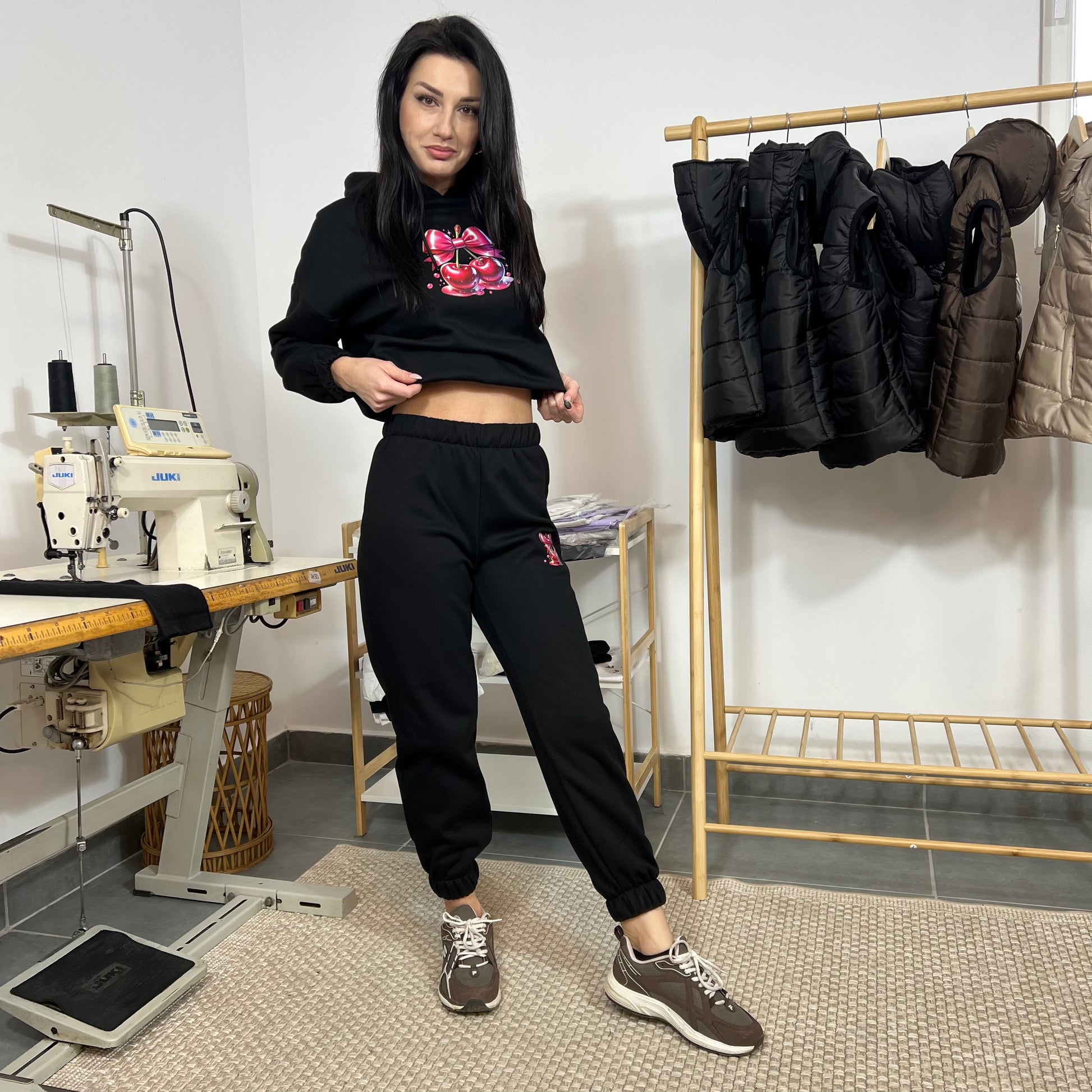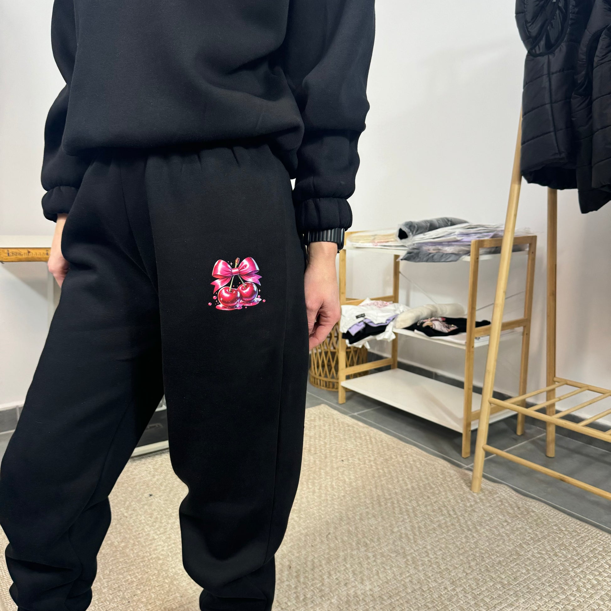 Ватиран комплект SWEET CHERRY от две части с качулка - черен