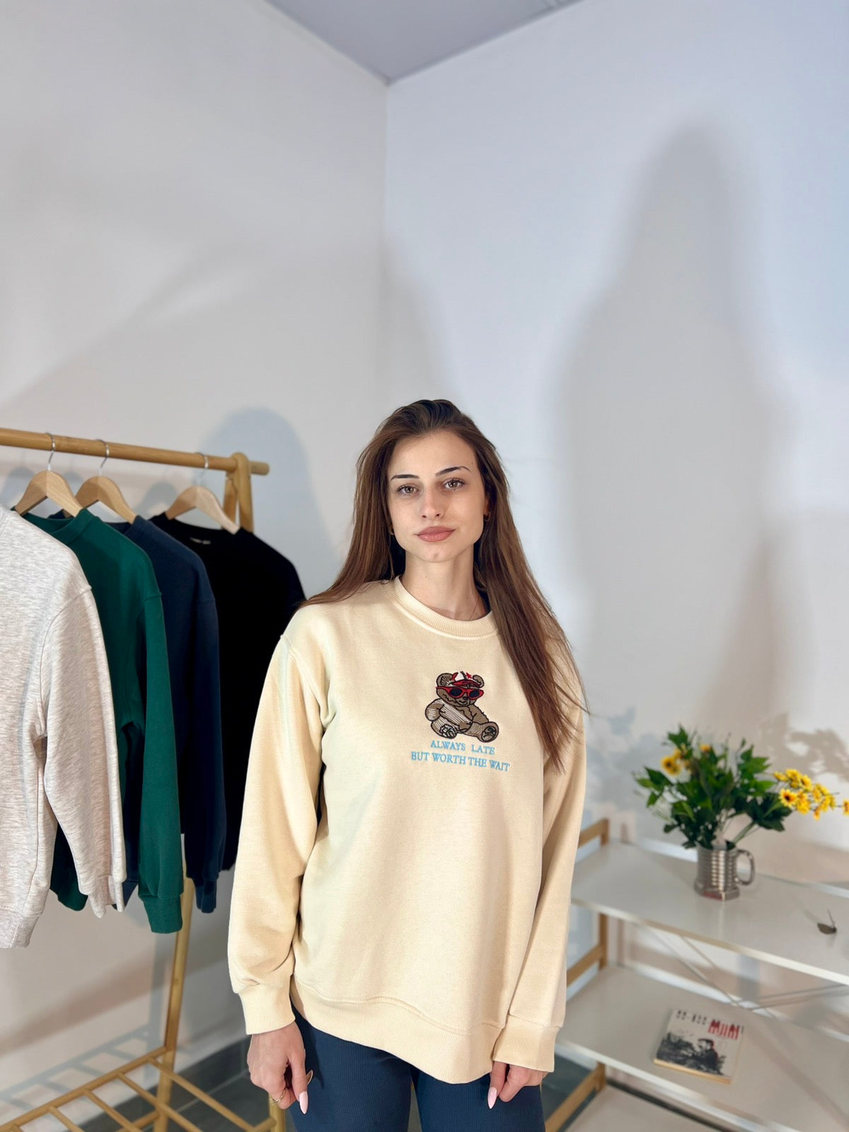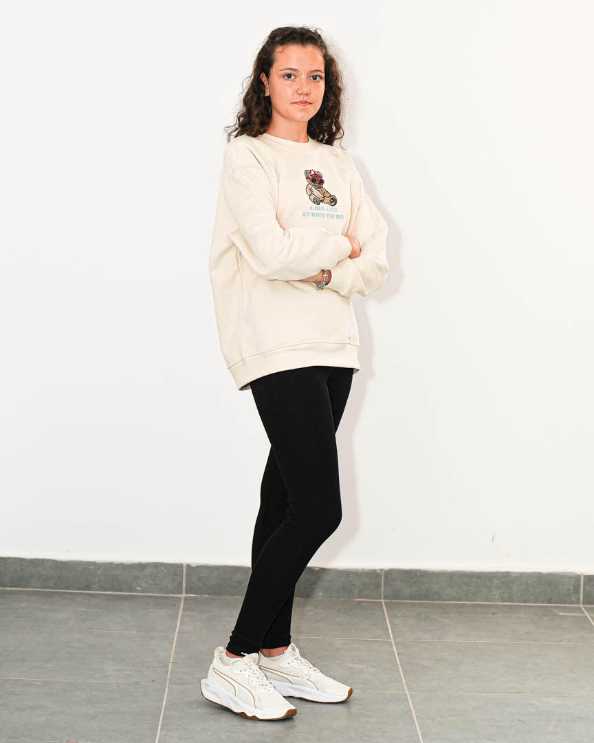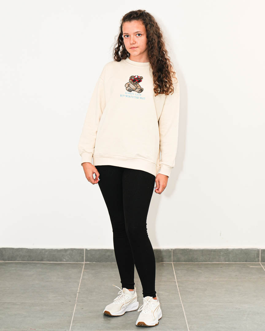 Дамска блуза с декоративна бродерия мече 5547 беж дюс