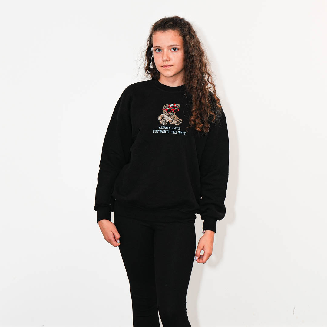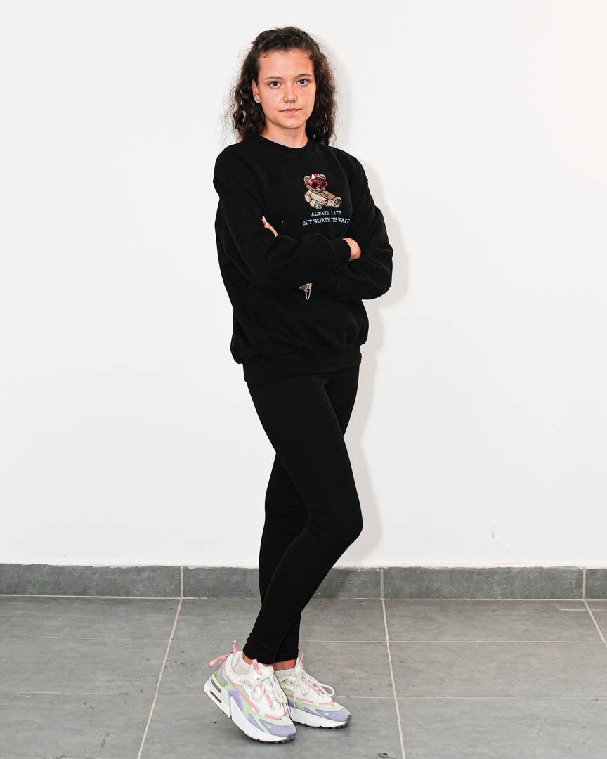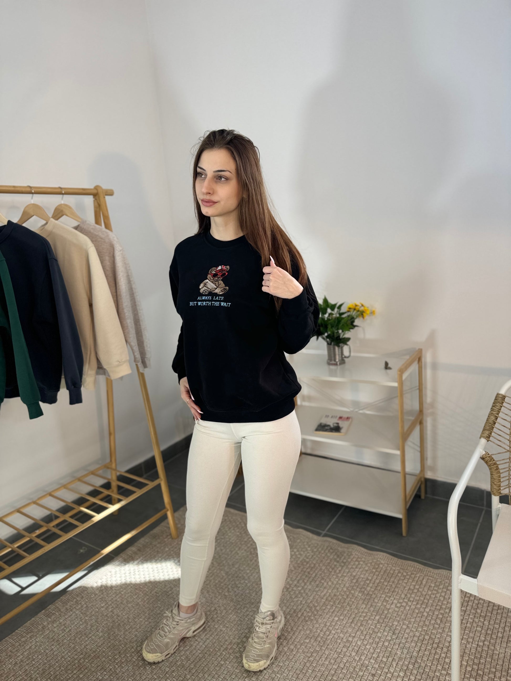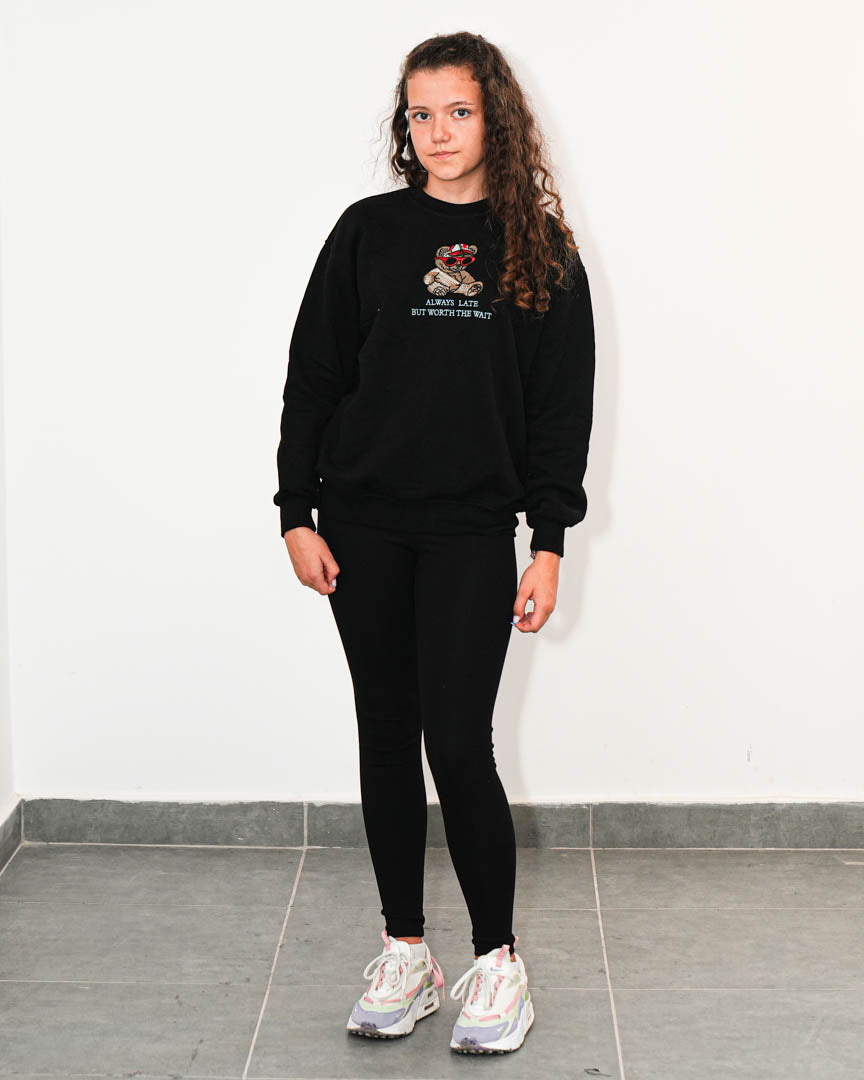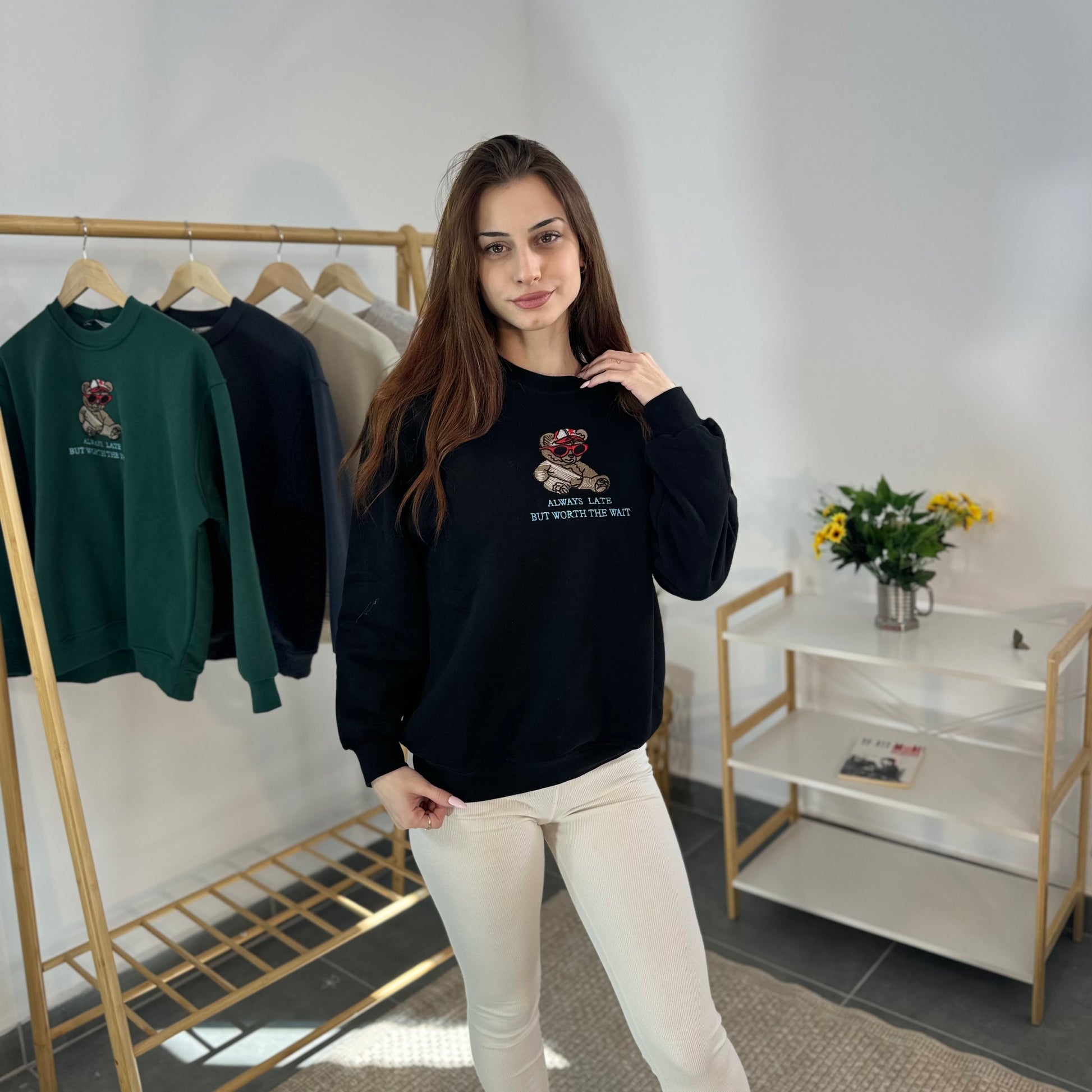 Дамска блуза с декоративна бродерия мече 5547 черна