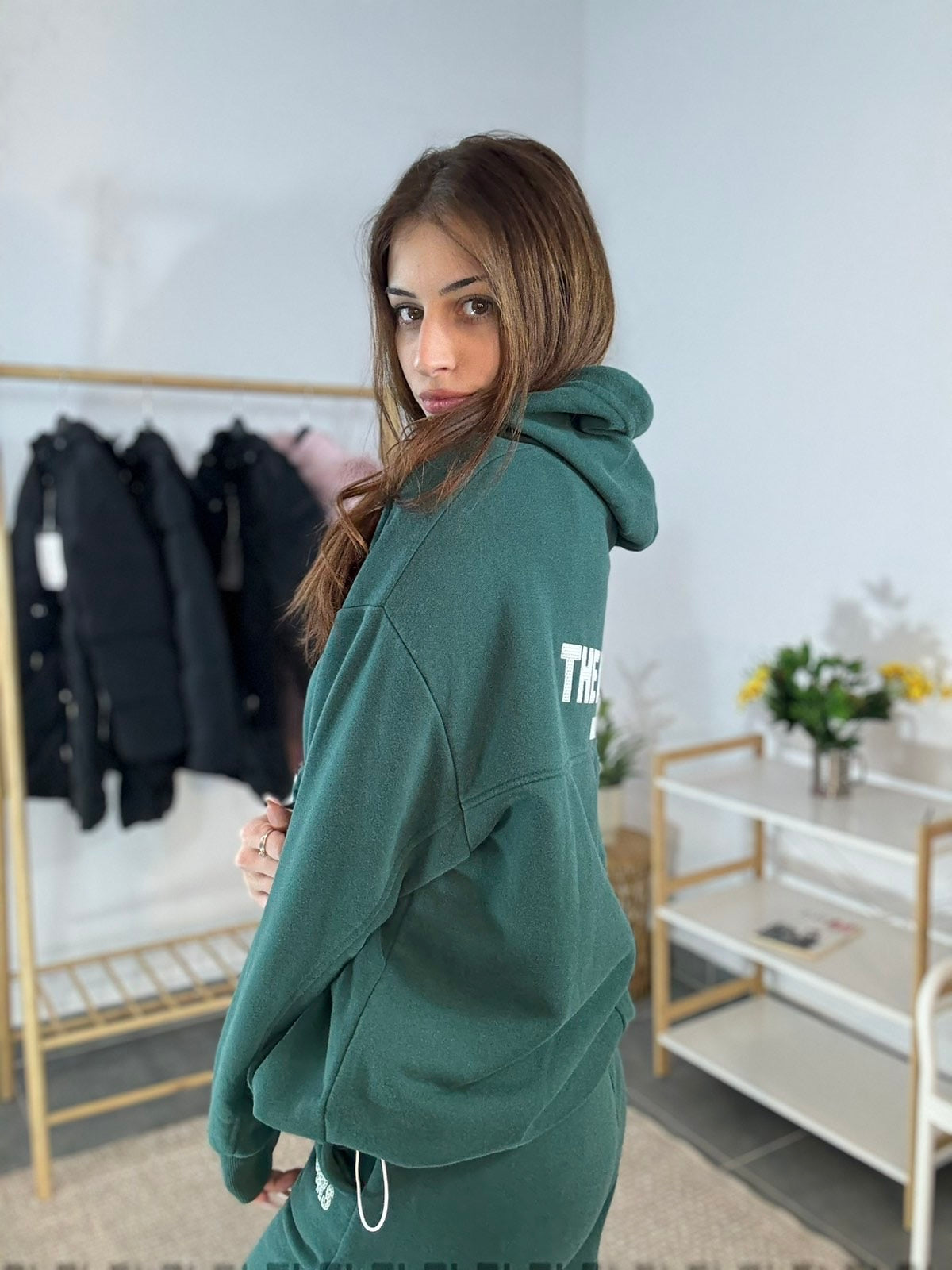 Горнището с качулка и щампа придава модерен и енергичен вид, докато панталонът с идеална кройка осигурява свобода на движение и комфорт през целия ден. Независимо дали си в града, на разходка или пътуваш, този комплект ще бъде твоята втора кожа.