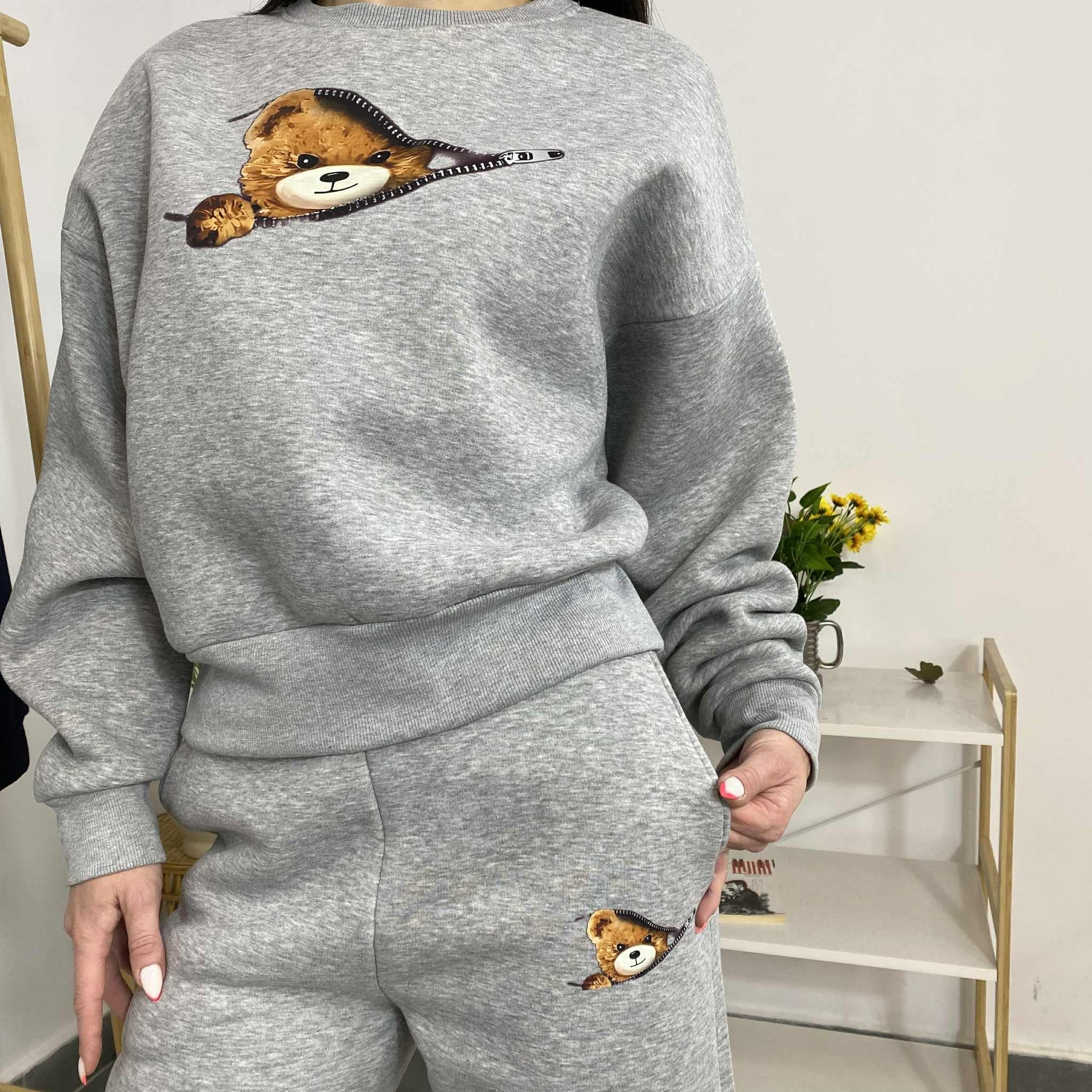 Ватиран комплект ТЕДИ от две части с принт мече Сиво