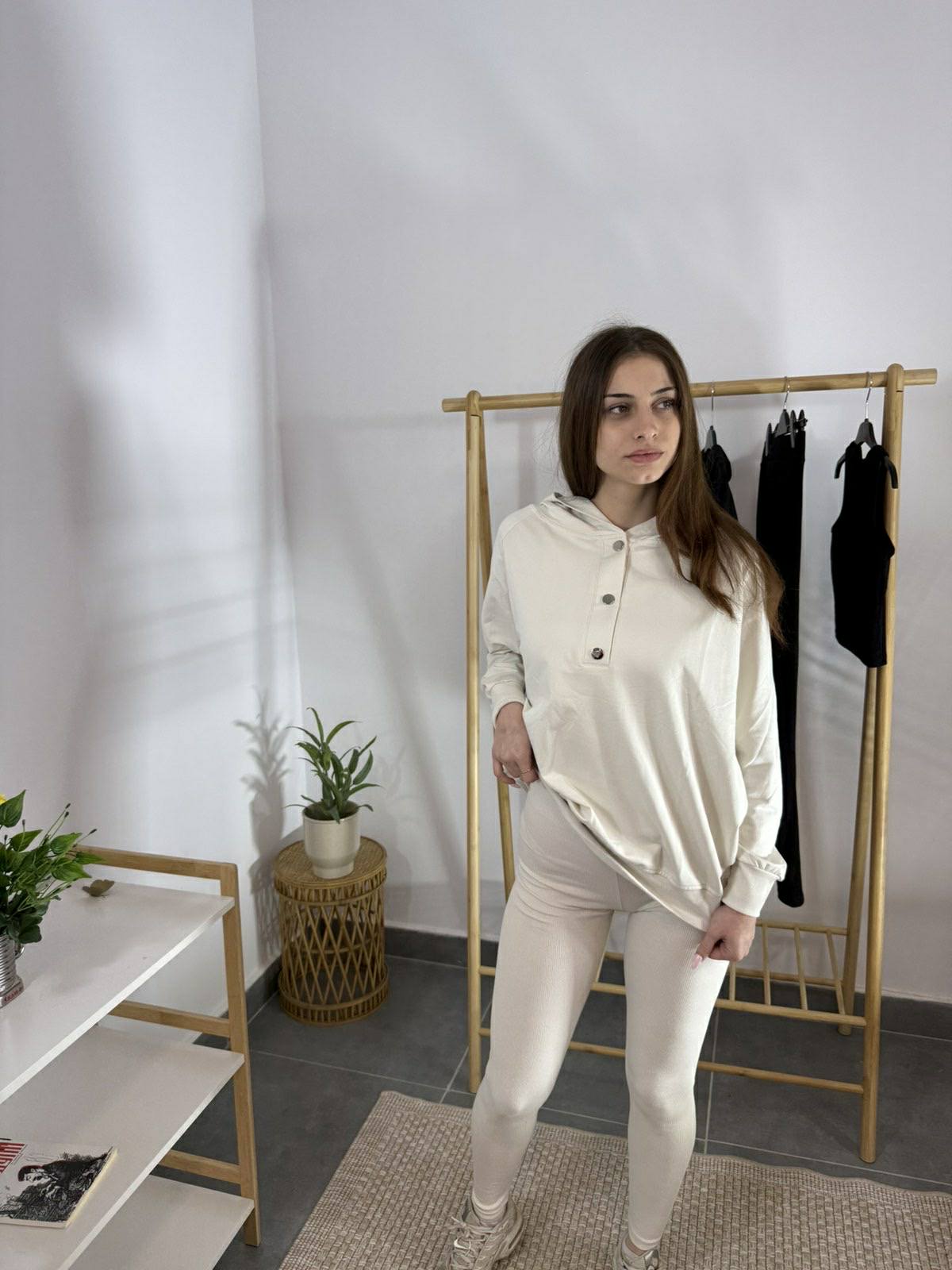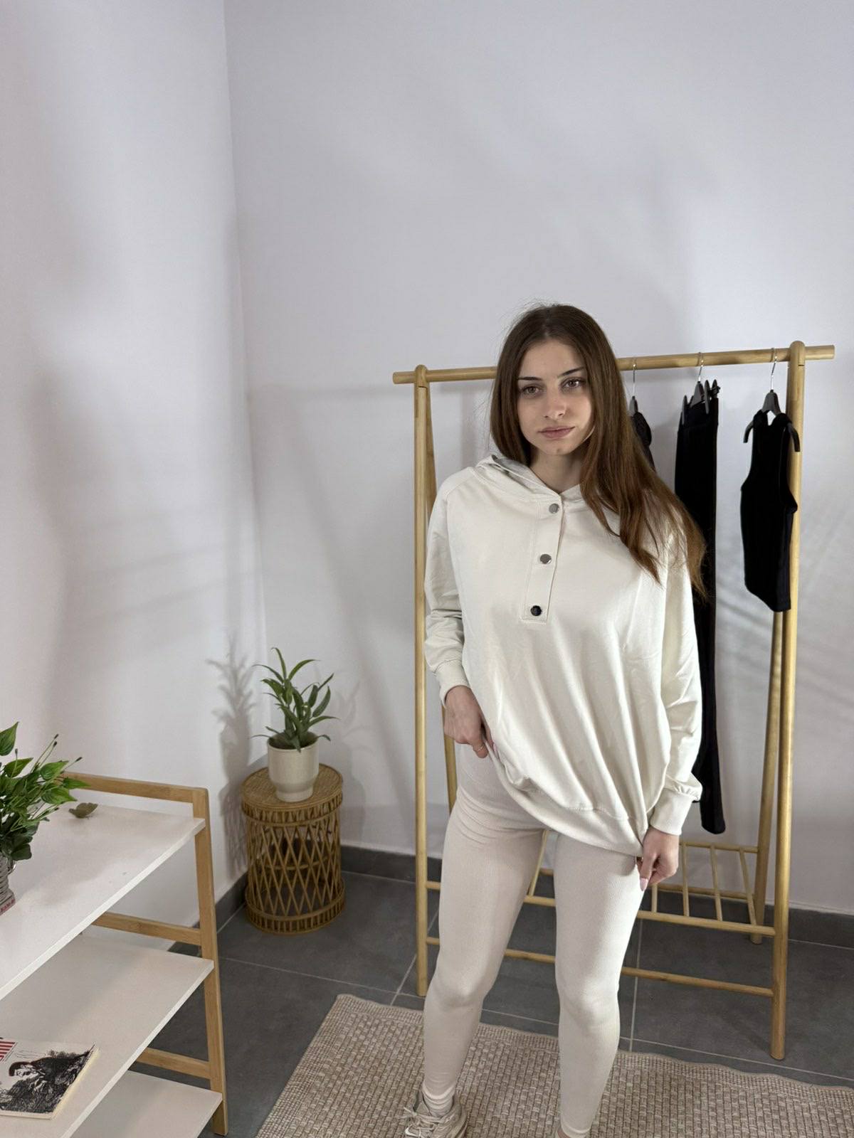 Суичър с качулка и копчета – изработен от 94% памук и 6% еластан, мек и практичен за всеки ден