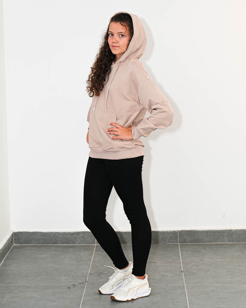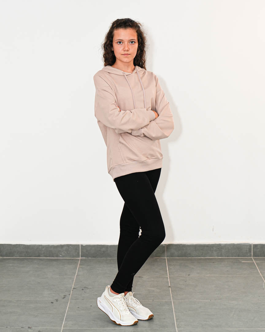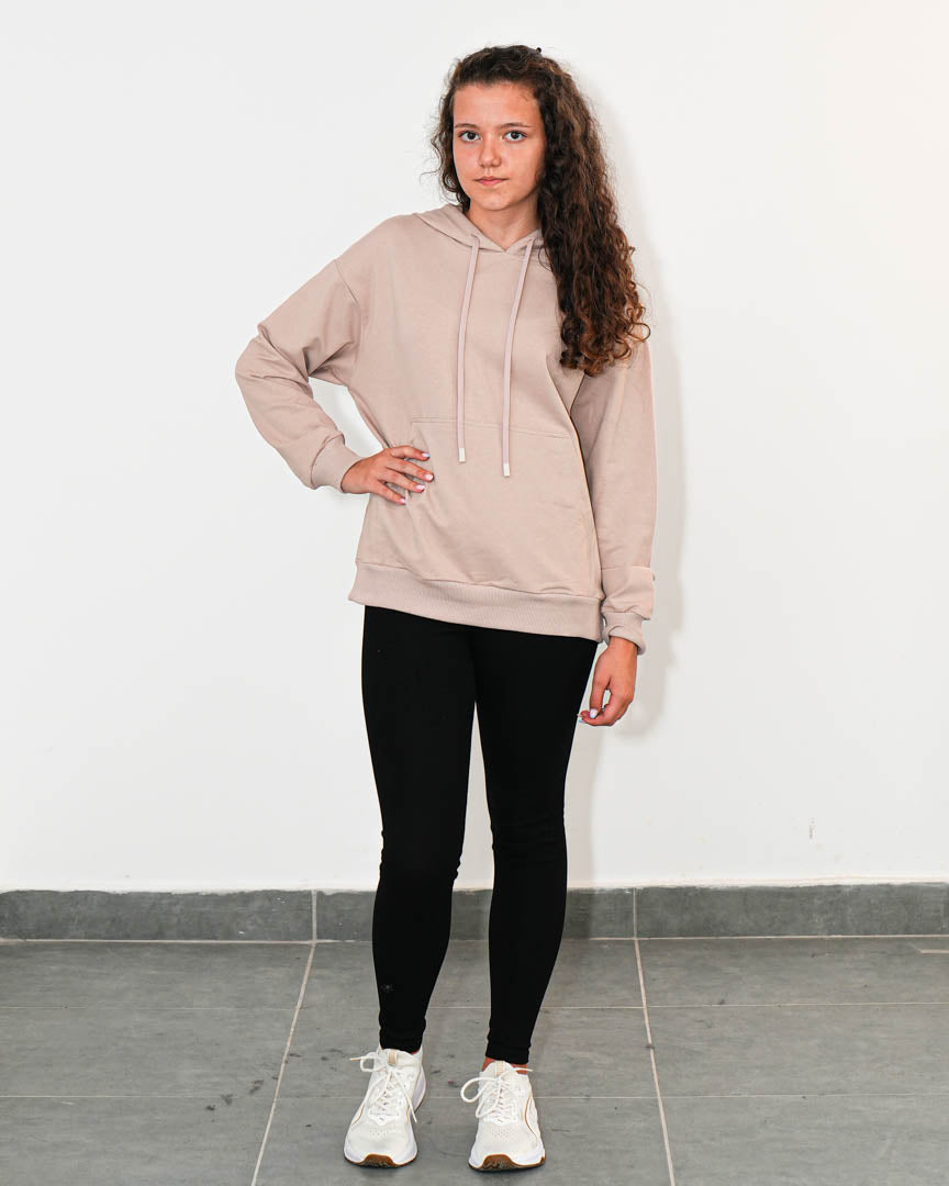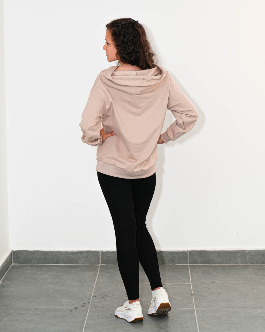 Дизайнът с качулка и удобна кройка съчетава практичност и модерна визия. Подходящ е за разходка, тренировка или уют у дома – този суичър е must-have за гардероба на всяка жена.