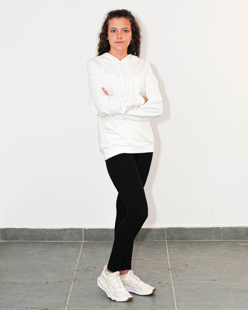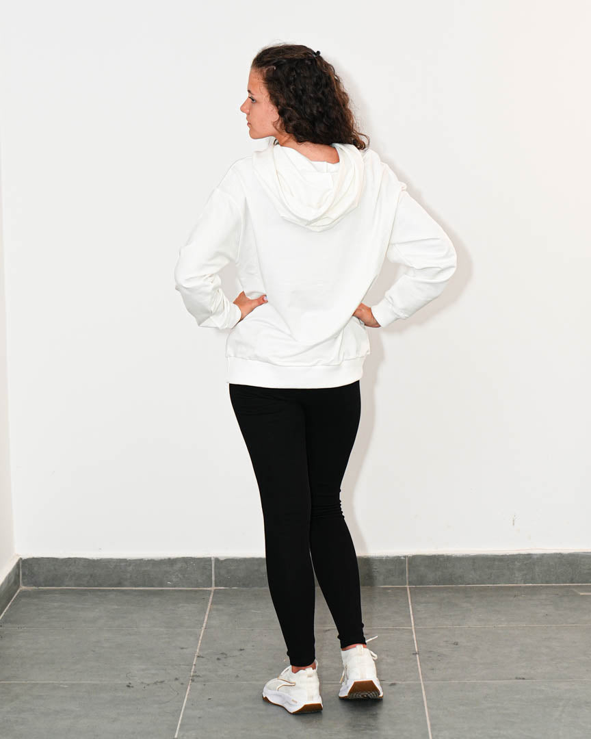 Дизайнът с качулка и удобна кройка съчетава практичност и модерна визия. Подходящ е за разходка, тренировка или уют у дома – този суичър е must-have за гардероба на всяка жена.
