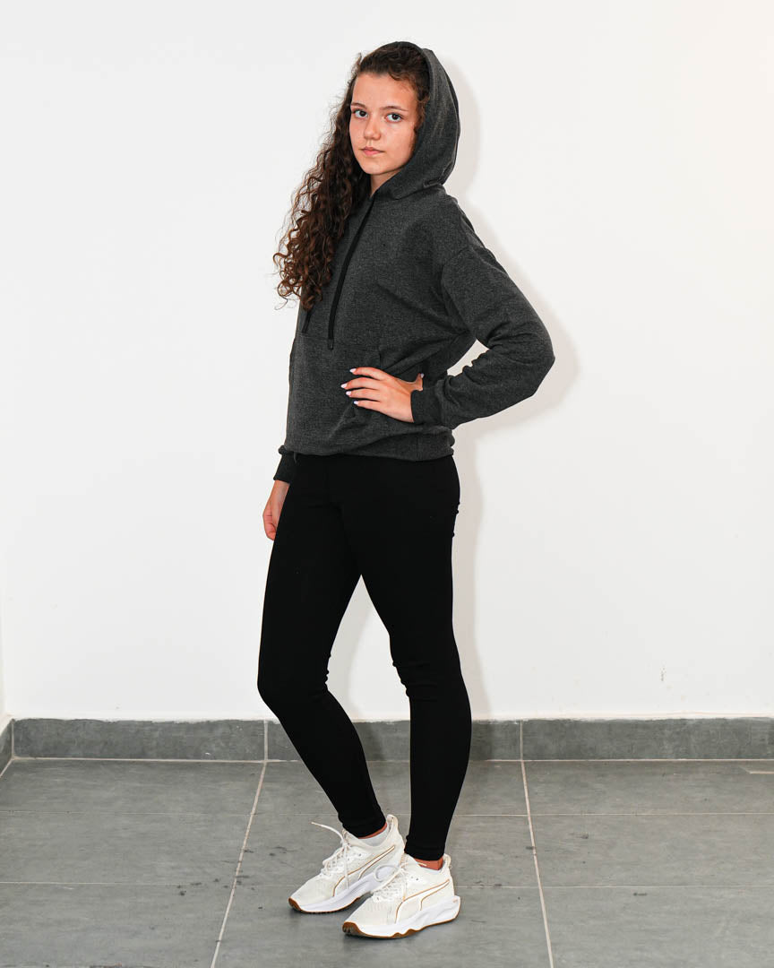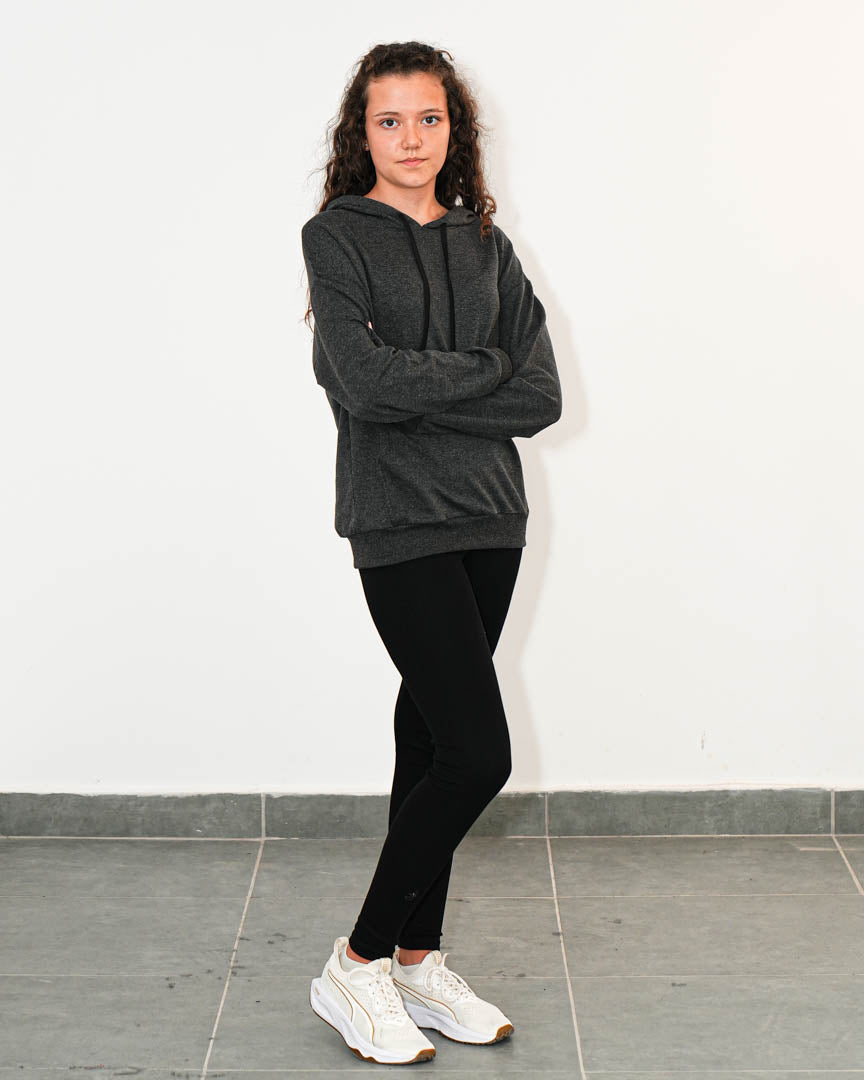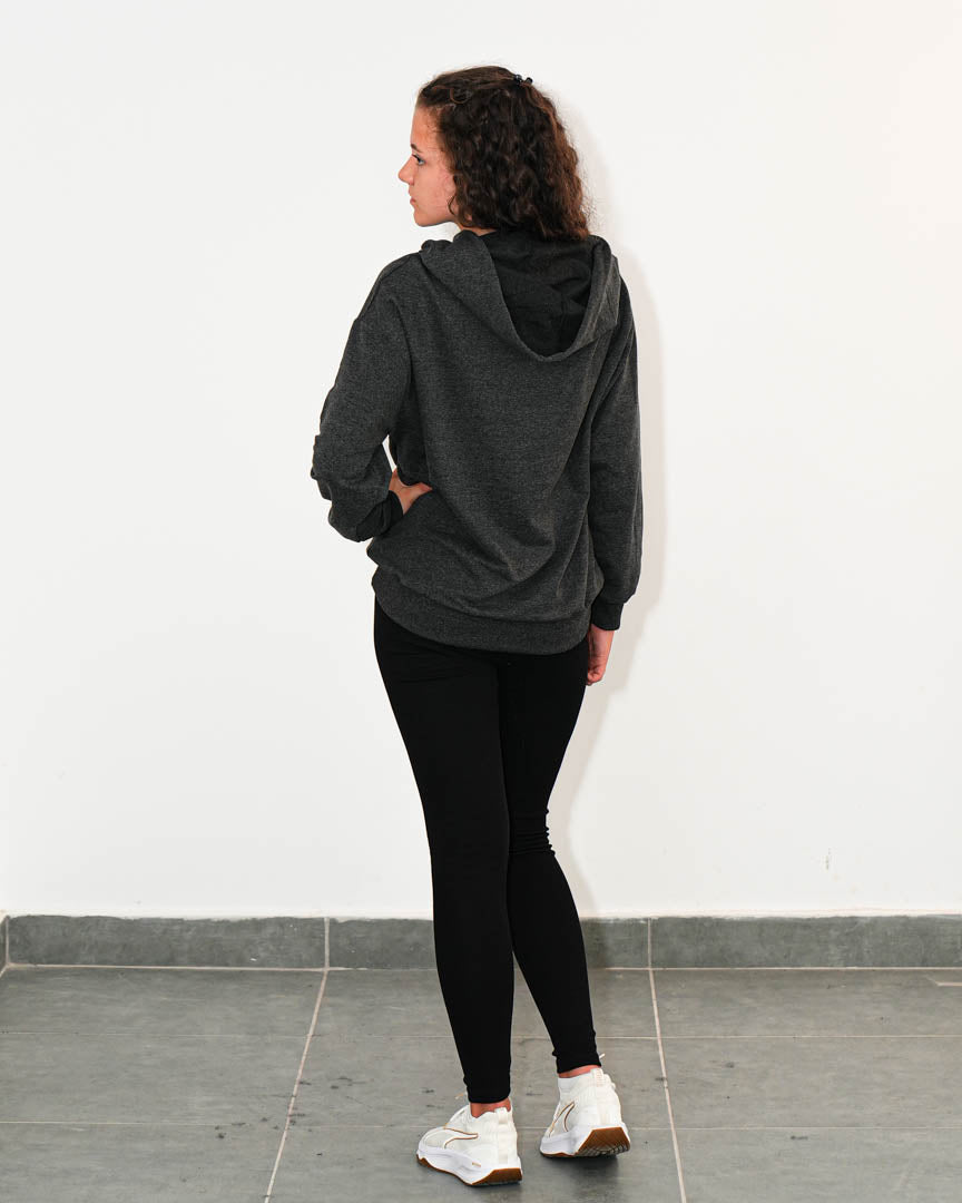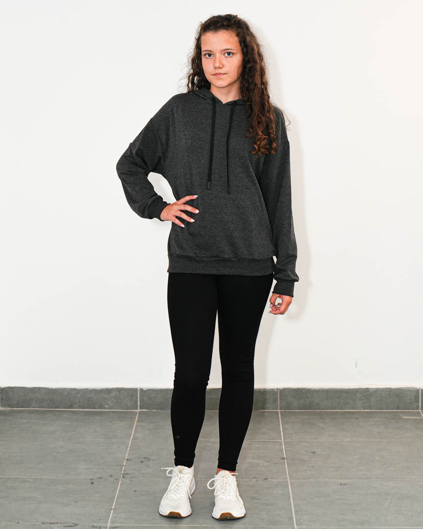 Дизайнът с качулка и удобна кройка съчетава практичност и модерна визия. Подходящ е за разходка, тренировка или уют у дома – този суичър е must-have за гардероба на всяка жена.