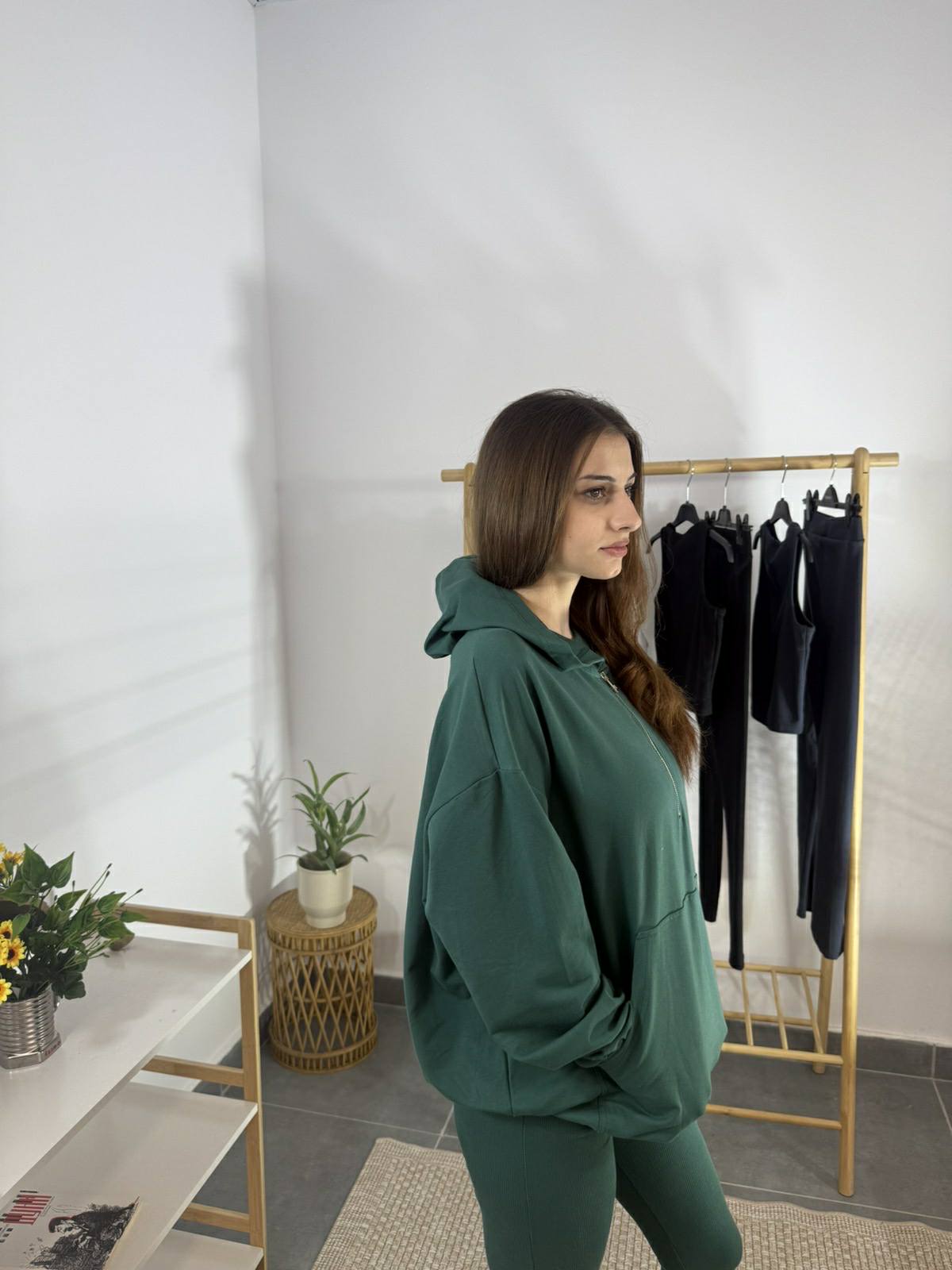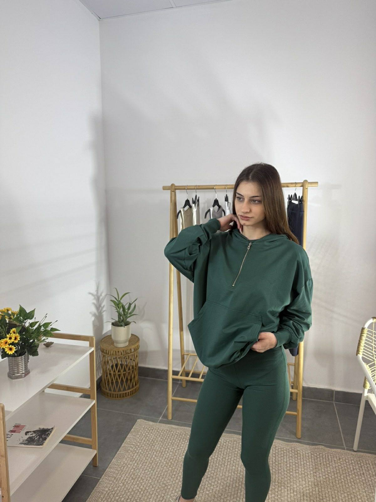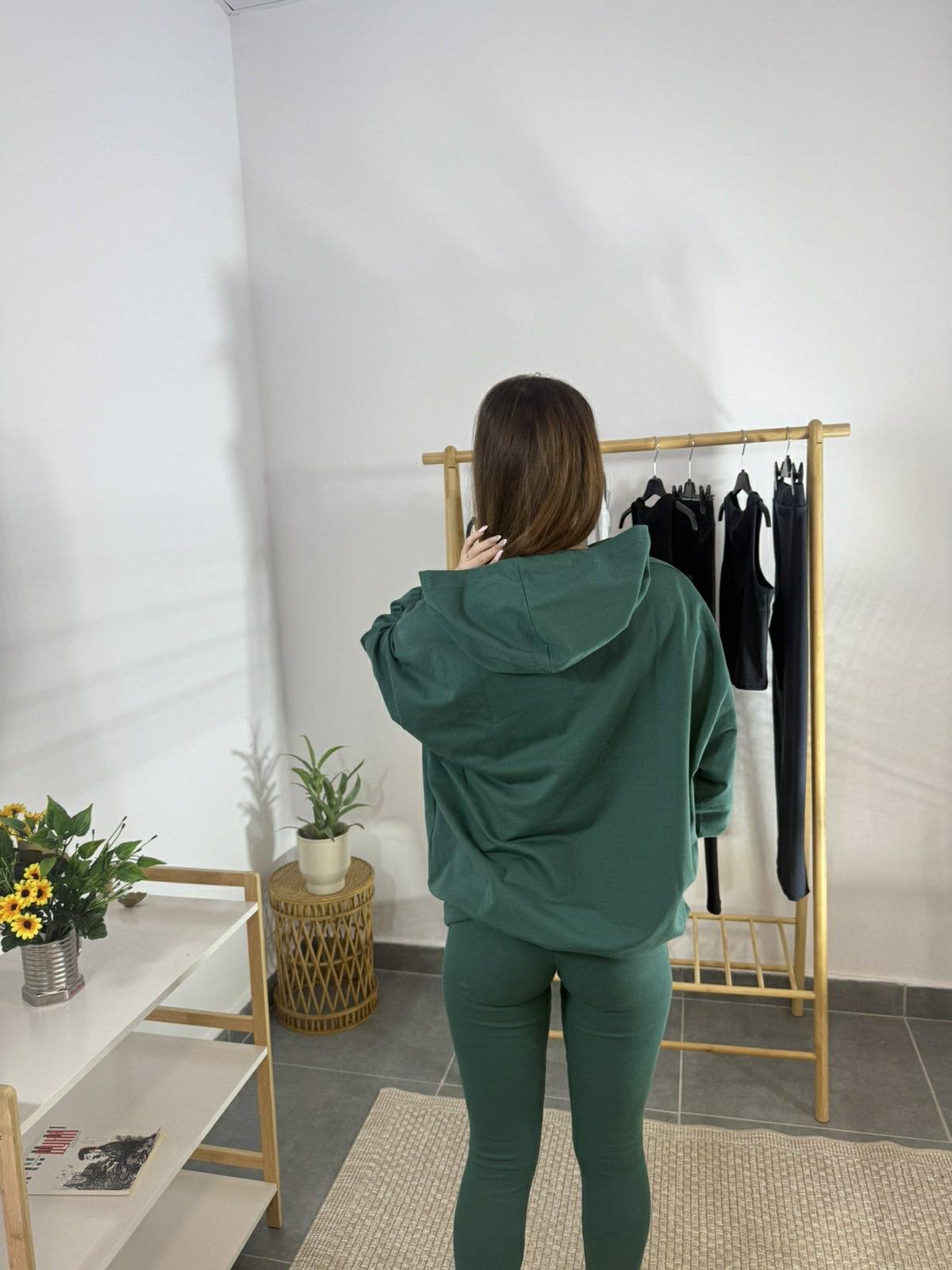 Комплект 3 в 1 суичър кенгуру и топ рип H5471 Зелен