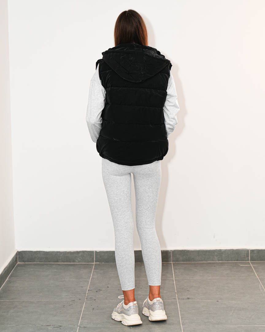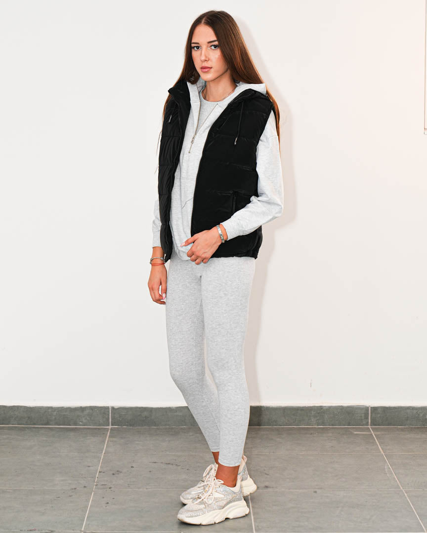 Моделът е с промазан ефект, който придава модерно излъчване. Качулката със шнур и джобовете с цип добавят практичност и функционалност, а изчистеният силует я прави лесна за съчетаване с различни спортно-елегантни визии.