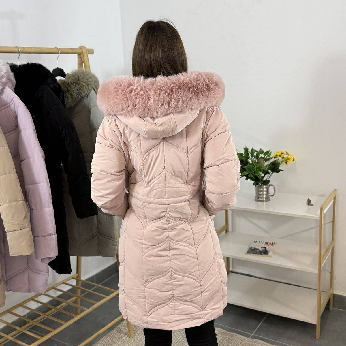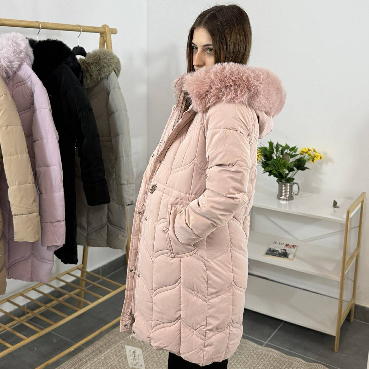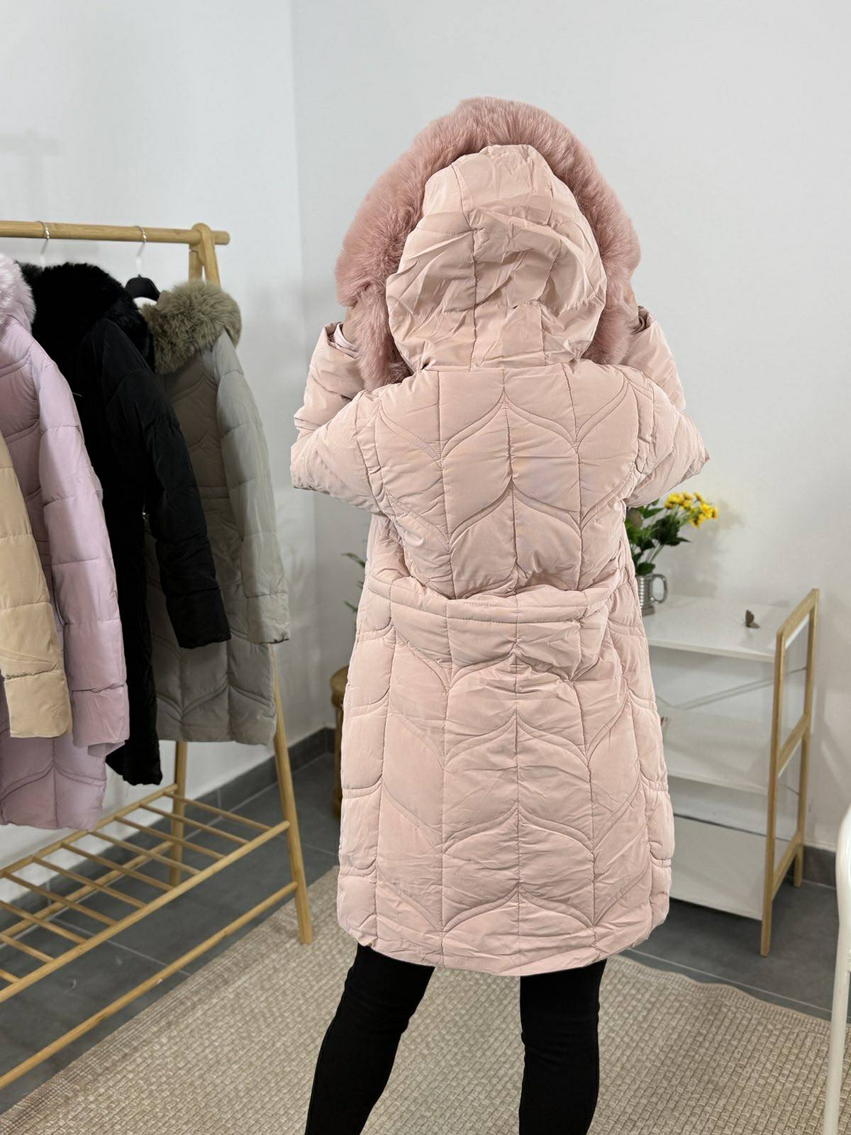 Добави нежност и стил към зимната си визия с това модерно дамско яке в нежен пудра розов цвят. Моделът впечатлява с елегантна капитонирана шарка и пухкава качулка, която съчетава топлина и лукс. Изработено от висококачествена материя, якато предпазва от студ и вятър, якето осигурява максимален комфорт през студените дни.
