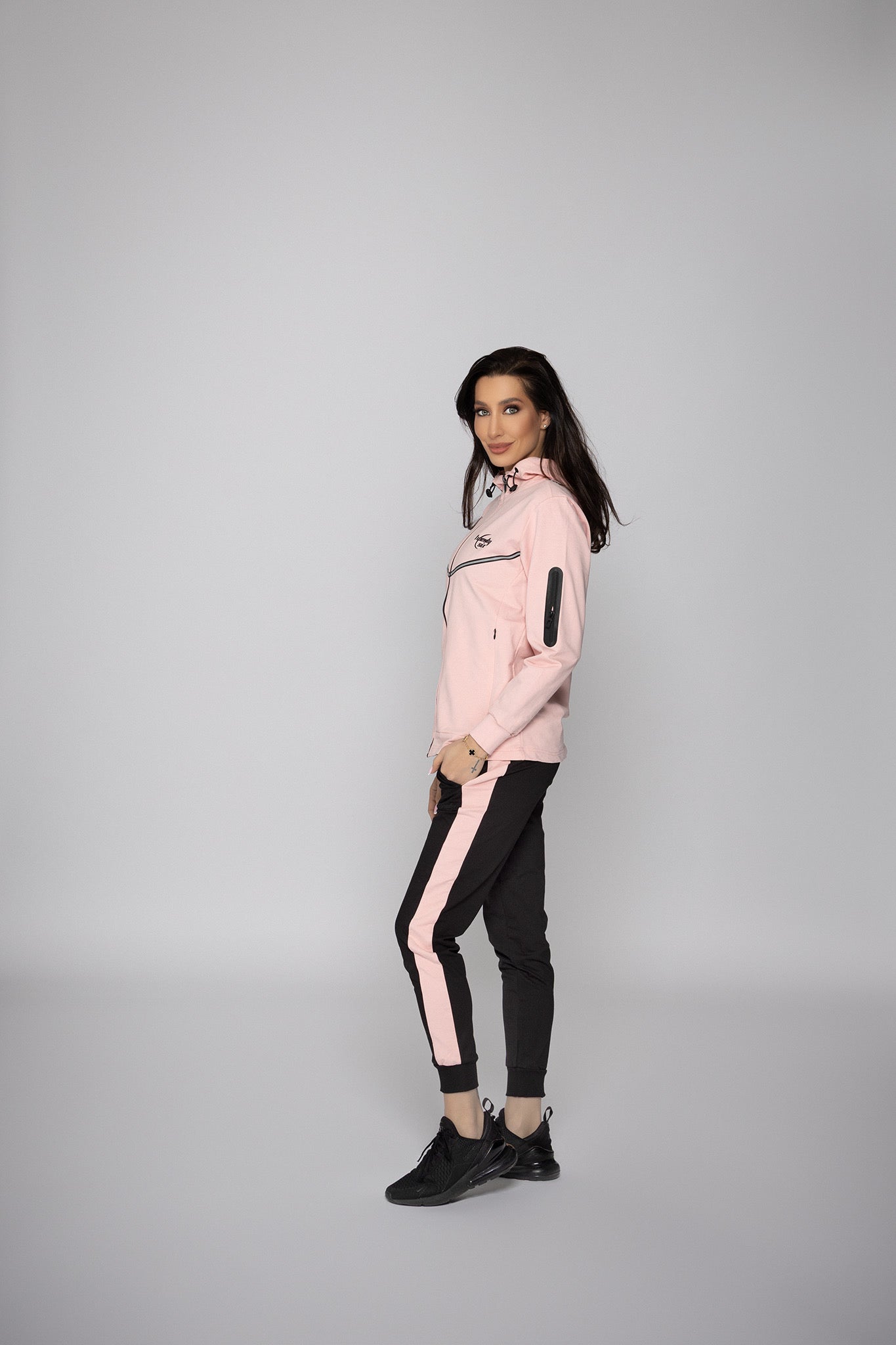 Комплектът включва горнище с дълъг ръкав и долнище с еластична талия, които приляга красиво по тялото и позволяват свобода на движение. Универсалният спортно-елегантен дизайн го прави подходящ за всякакви поводи.